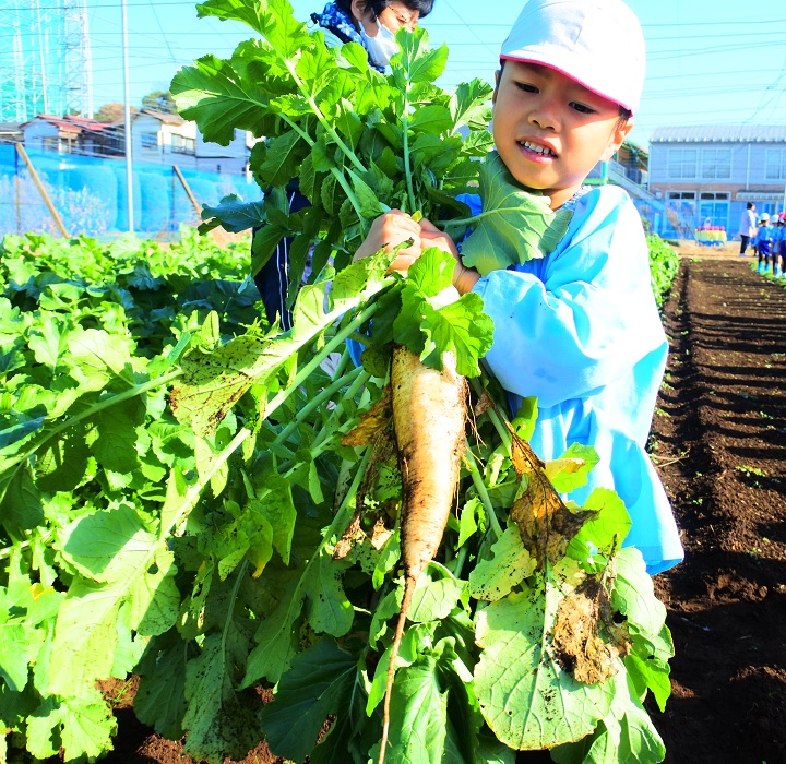 「プレ保育1歳児」保護者同伴で行うプレ保育!月1~2回の活動があります。梨やじゃがいもなど収穫体験を楽しもう!!!1歳児プレ「どんぐりクラブ」