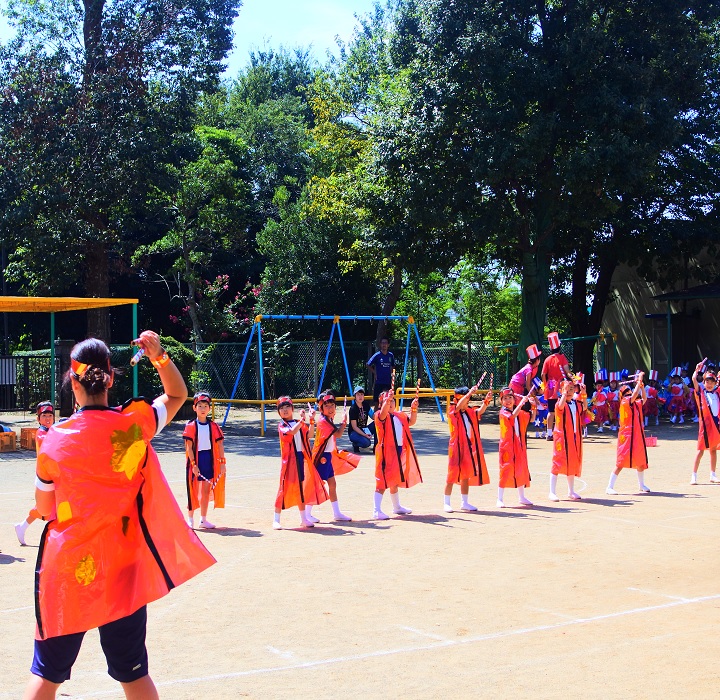 「3年保育(年少~年長)」遊びを中心とした保育を基盤に知育(ひらがな・数字)・英会話・体育指導・音楽表現活動・製作など様々な活動をします。3年保育カリキュラム